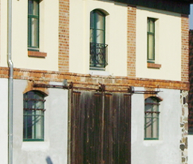 Aus einem alten Schafstall entstand eine moderne und großzügige Malerwerkstatt mit Büros und einer Wohnung. Der teilweise eingefallene Stall wurde von grund auf saniert. Die gesamte Dachkonstruktion ist neu und besteht aus einem freien Leimholzfettendach. Darunter entstand im Obergeschoss eine großzügige Lagerfläche für sämtliche im Malerbetrieb notwendigen Materialien. Das Erdgeschoss beherbergt die eigentliche Werkstatt mit verschiedenen Abteilungen.